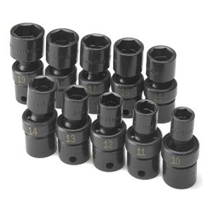 | Swivel Socket Set, 3/8 Dr, SAE, 6 Pt, 10 Pcs |